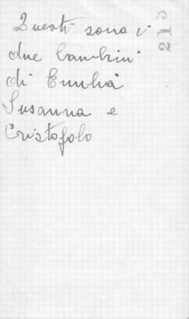 Susanna e Cristofolo - Retro Retro della fotografia di Susanna e Cristofolo figli di Emilia Spinosa (figlia di Armidoro) - sul retro è scritto: "Questi sono i due bambini di Emilia Susanna e Cristofolo" - fotografia di Elvira Tupone di Filippo e Maria Spinosa https://tupone.it/immagini/02/susanna-e-cristofolo-retro/viewhttps://tupone.it/immagini/02/susanna-e-cristofolo-retro/@@images/image-1200-b682116f17cdd6eda4531f8e8735c824.jpeg